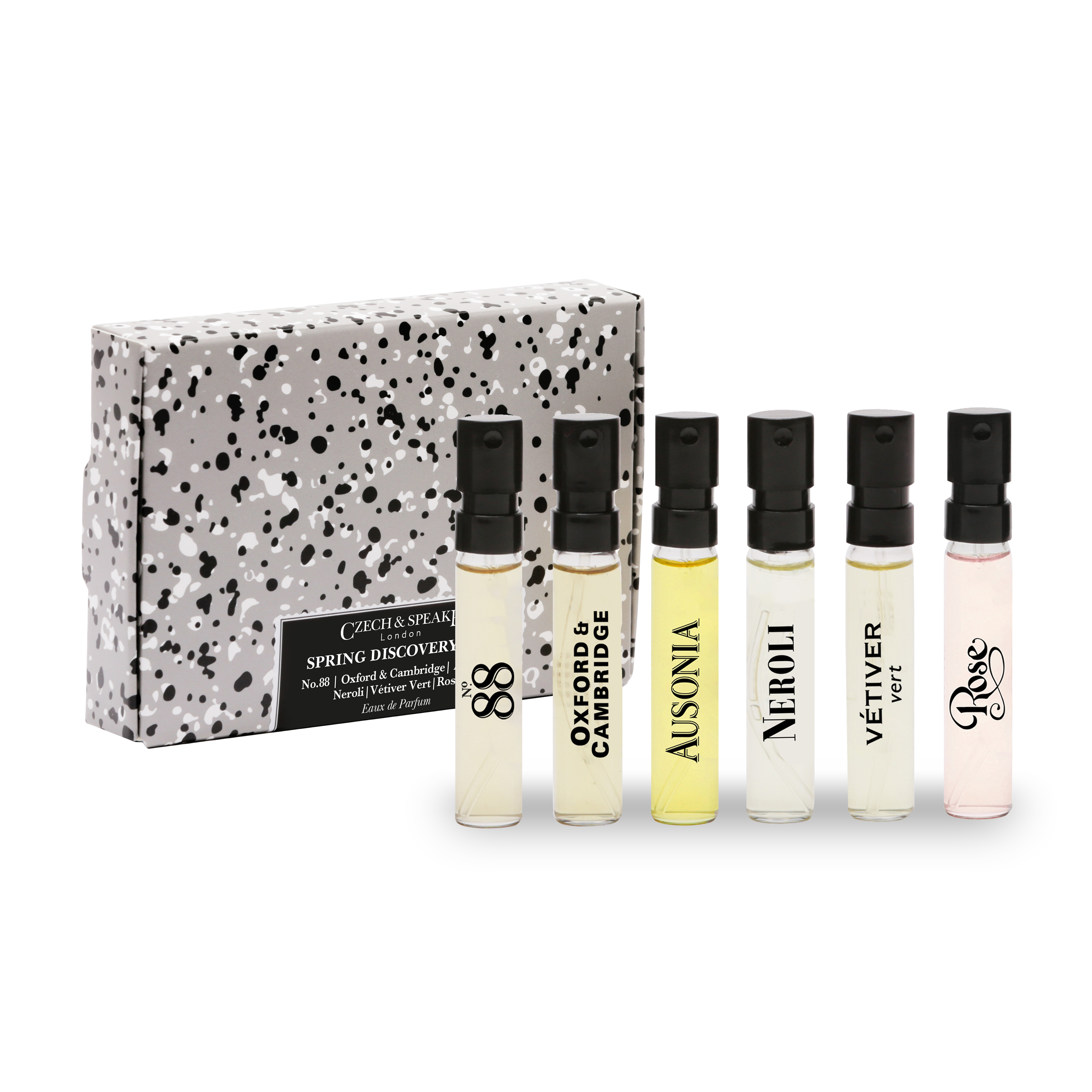 DISCOVER: Six opulent Eau De Parfum 2ml samples to explore the very best seasonal spring scents, including iconic No.88, calming lavender Oxford & Cambridge, oceanic Ausonia, bright Neroli, green Vétiver Vert and charming Rose.