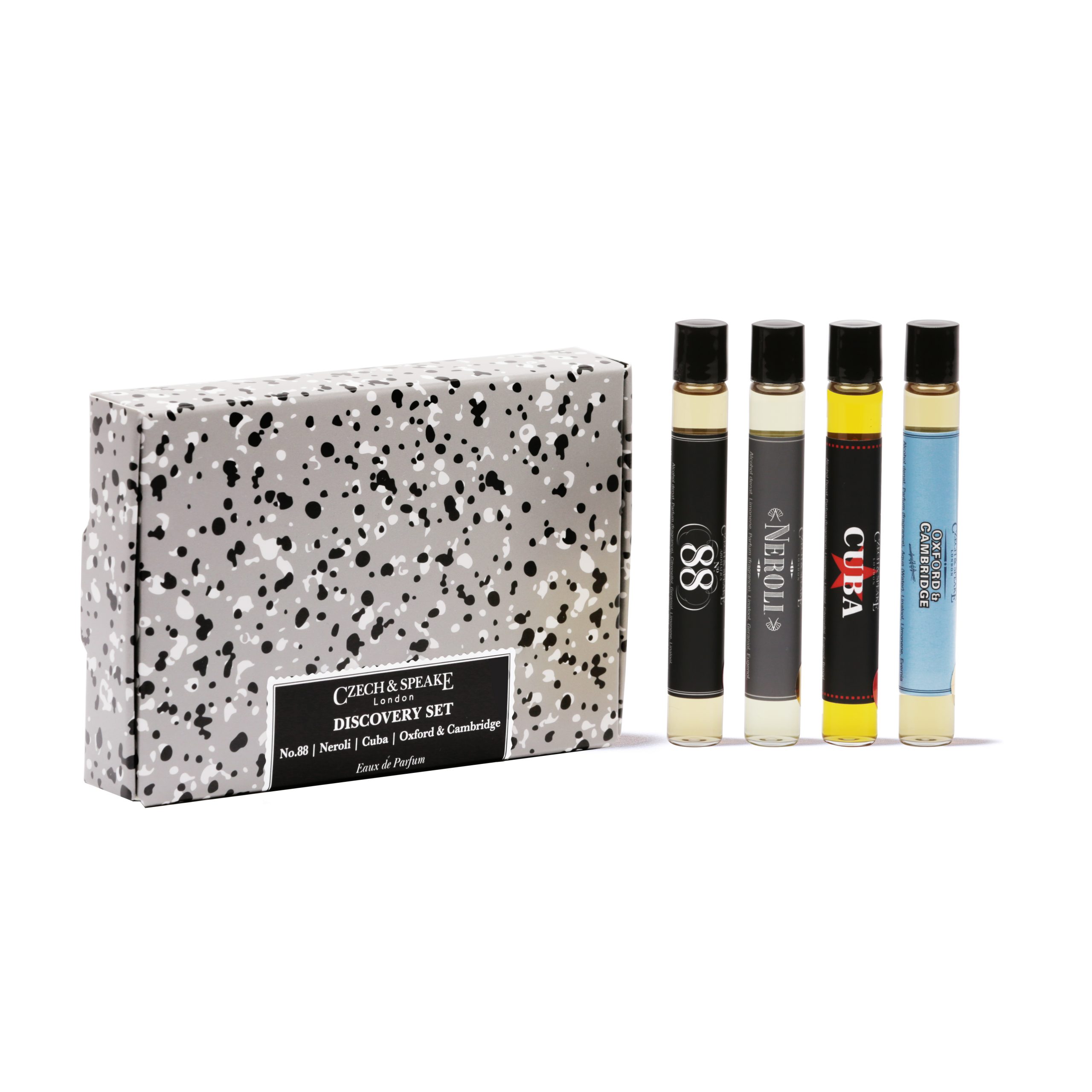 SCENT DISCOVERIES: A celebration of the original home of Czech & Speake, discover travel-ready 10ml Rollerball iterations of our original fragrance quartet: No.88, Neroli, Oxford & Cambridge and Frankincense & Myrrh.